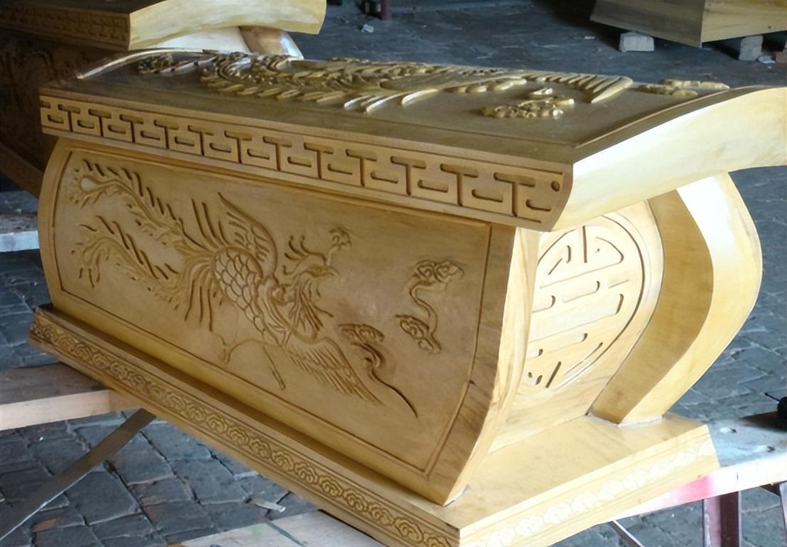 其次就是刻棺木。由于传统文化习俗的信仰,中国的棺木有着独特的文化特色,其上的花纹、上漆等一系列的操作都要专门的人来说,都是一些熟练的先生来做。并且不同地位、不同身份的人棺木之上的花纹都各不相同,寓意不一。