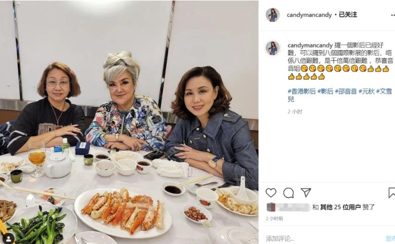 好友余家伦为她设宴庆祝,曾饰演包租婆的元秋与妹妹文雪儿也跟她聚餐表达祝福。