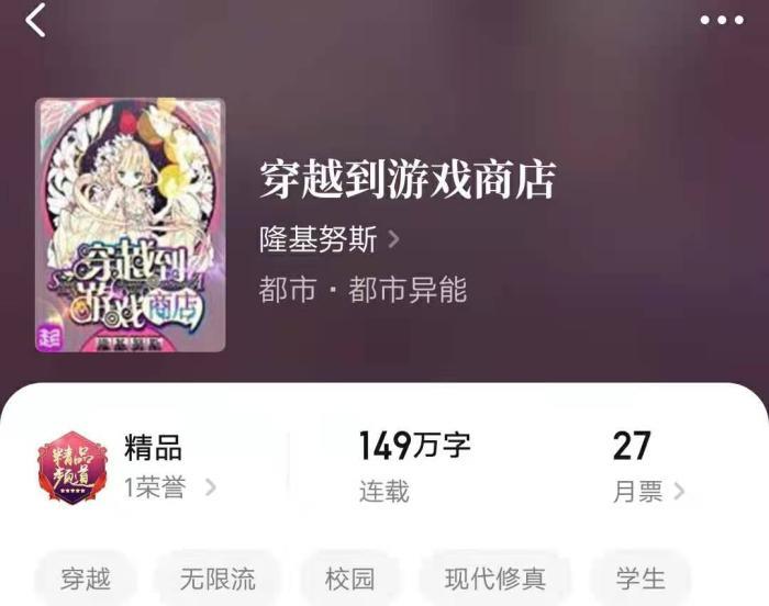 2.《穿越到游戏商店》作者:隆基努斯