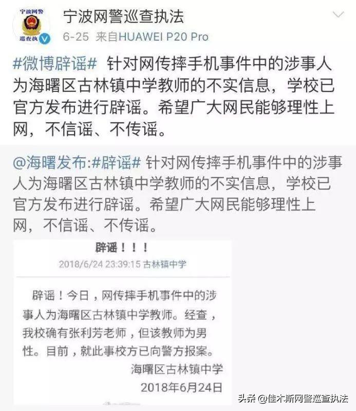 真实新闻的当事双方虽已和解,但有关大妈身份的谣言网帖仍在流传。根据网帖公布“张利芳”的家庭住址和电话号码,有媒体拨打网帖公布的电话号码后发现,接电话的张利芳是一名男性。传言中提到的“张利芳工作单位”宁波市海曙区古林镇中学也公开辟谣。