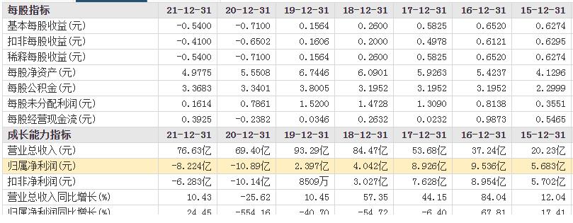 值得一提的是,在2021年10月29日公布的业绩预告中,公司曾预计2021年全年净利润盈利9.5亿元至10亿元;结果在2022年4月底发布的业绩预告修正公告则上演了业绩大“变脸”,修正后亏损超8亿元,前后业绩差距达到18亿元以上!