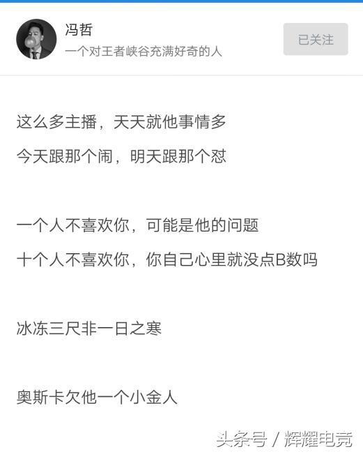 知乎王者荣耀知名博主冯哲也发帖声援