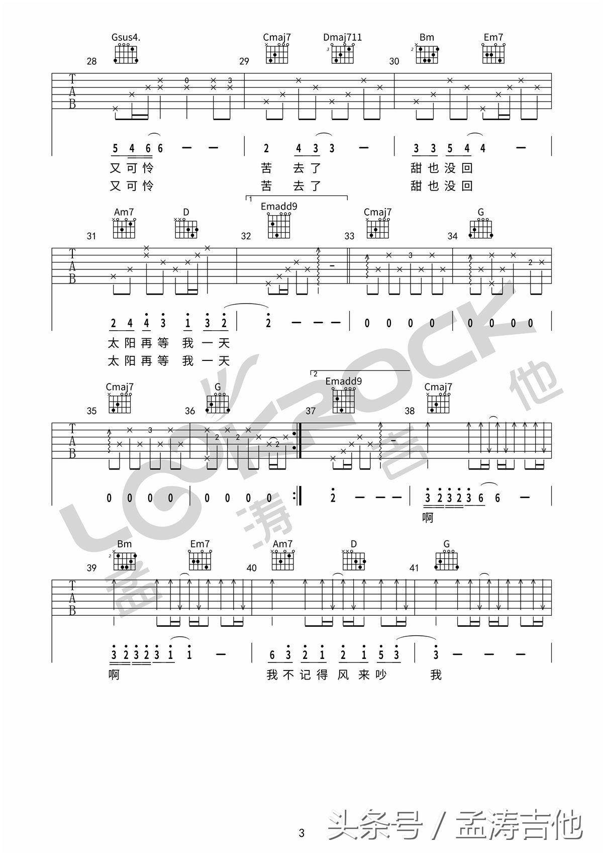 此次曲谱是弹唱谱,原曲G调,大家可以根据自己的情况改变变调夹的位置,比如音频视听里老师选用了变调夹夹3品。