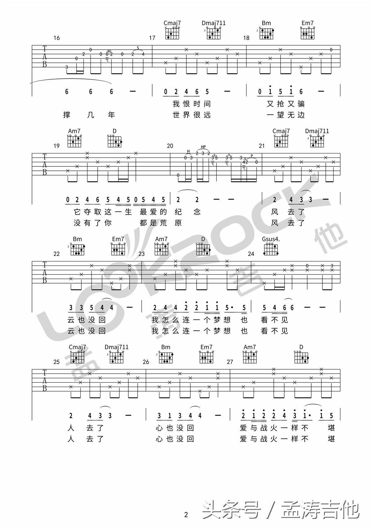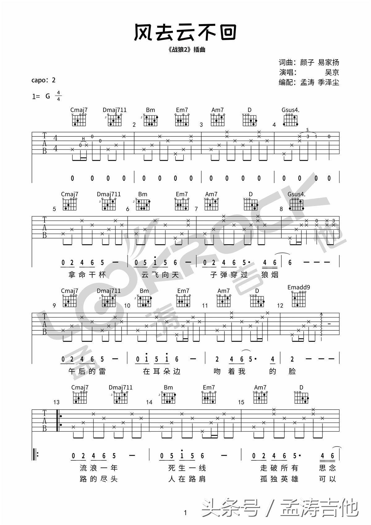 最难抗拒铁汉柔情——战狼2《风去云不回》吉他弹唱谱