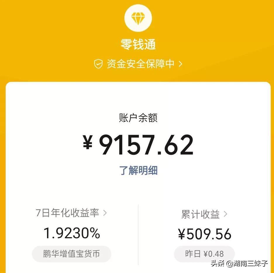 目前七日年化收益率为1 .923% ,也就是说一万元存在零钱通里面每天有0.5元钱收益,零钱通也可以支付, 又有收益 ,岂不是两全其美 ?
