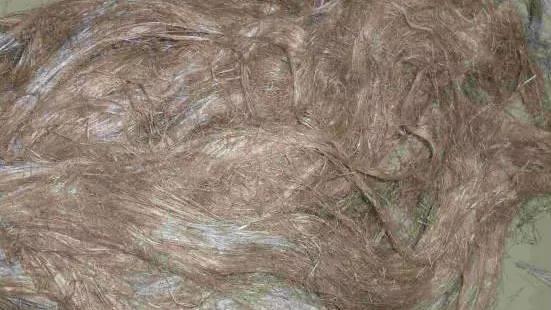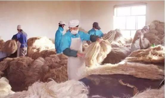 亚麻纤维存在于麻茎的韧皮组织中,可经沤浸脱胶去除部分胶质,使粘连纤维束得到部分松散,再经压轧、打麻加工成10~20根单纤维组成的工艺纤维。