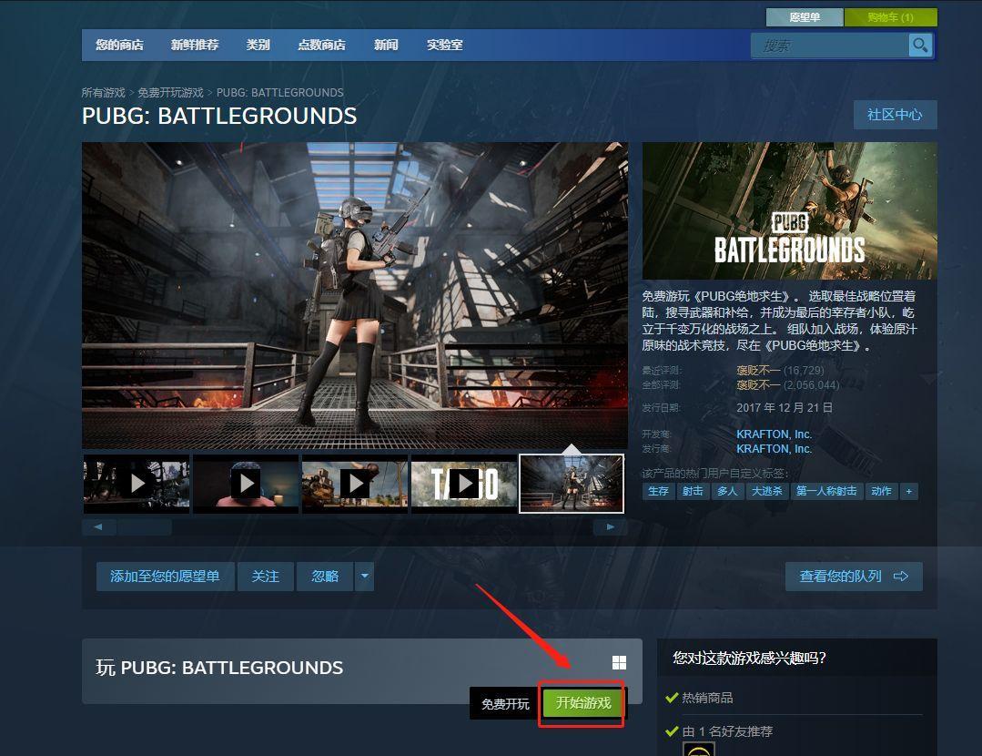 2.在Steam中搜索“PUBG”点击“开始游戏”即可,现在蓝洞已经免费了这款游戏,所以无需购买就可以下载安装;如果已经安装了游戏的玩家可以省略这步直接跳到下一步: