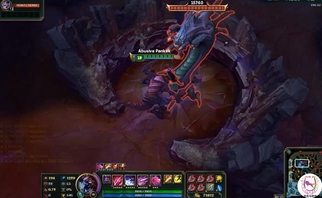 几乎和基地水晶差不多一样大的科加斯,是不是被吓到了呢?LOL中其实现在有一个体型默认限定,大虫子的这个巨大块头在20多层的时候就固定了。如果没有这个限制,恐怕大虫子100层早就占满屏幕了。