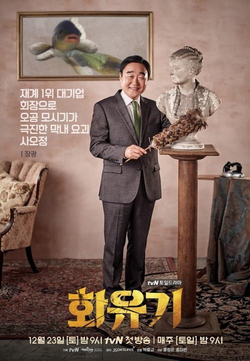 12月19日,tvN新周末剧《花游记》(和游记)方面公开了一组角色海报。 照片中,每位演员身边都有一幅明示在剧中角色出身来历的画作。吴涟序饰演唐三藏,身边放着莲花;李昇基饰演孙悟空,身后放着猴子;李洪基饰演猪八戒,手里拿着一张猪的画像;张光饰演沙悟净,身后挂着鱼的照片;车胜元饰演牛魔王,身后放着一头牛的画作。 在剧中,吴涟序饰演的陈善美是专门低价收购凶宅、废旧老宅,之后再高价转手卖出韩光不动产老板,集美貌和财力于一身。虽然陈善美只是个普通人,眼中却能看到妖怪,同时也是众多妖怪紧盯的对象。 此外,李昇基饰演拥有致命颓废美的齐天大圣孙悟空,风格华丽法力无边,是个既敢于叫板玉皇大帝,也懂得明哲保身的顽童。车胜元饰演的牛魔王,想当神仙修行了千年。同时也是韩国最大娱乐公司的老板吴辉哲,绅士而富有魅力,是一个比顶级明星还有人气的成功人士。 李洪基饰演具有诱惑女人之妖力的猪八戒,同时也是韩国顶尖的超级花美男巨星P.K,而P.K所属经纪公司Lucifer企划的老板正是牛魔王。张光饰演韩国最大财团的会长,看上去老成持重,实际上却是尽心尽力伺候孙悟空的沙悟净。 另外,《花游记》根据中国古典小说《西游记》改编,由《最佳爱情》朴洪均导演与《最佳爱情》、《原来是美男》、《主君的太阳》的编剧洪贞恩、洪美兰合作打造,讲述拥有致命颓废美的坏小子孙悟空与高尚的绅士牛魔王在黑暗世界中寻找光明的旅程故事,将于23日晚9时首播。(责编:邵天翔)