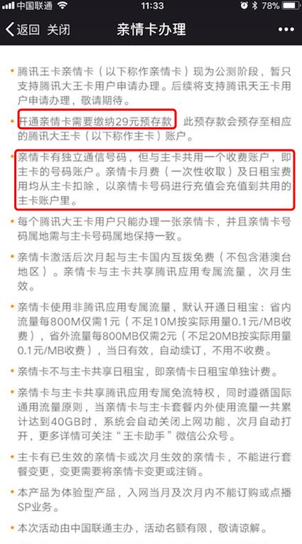 需要说明的是,目前这个活动只有腾讯大王卡用户可以参加,后续将会加入对腾讯天王卡的支持;亲情卡有独立的手机号码,但和主打共用一个计费系统;每个大王卡用户只能申请一张亲情卡,并且两张卡归属地要一致;另外申请亲情卡需要支付29元预存款。