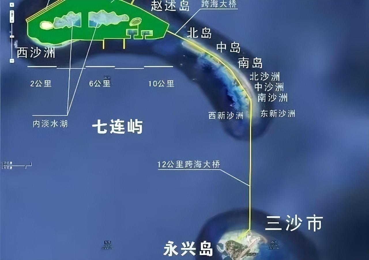 吹填完成以后,在七连屿修建一座跨海大桥, 可以连接永兴岛和石岛。