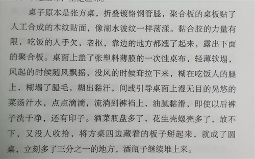王大师兄:肉身和肉手占据了雪苑(餐馆)临街所有面积大一半,仿佛拉下一半的巨幅窗帘。