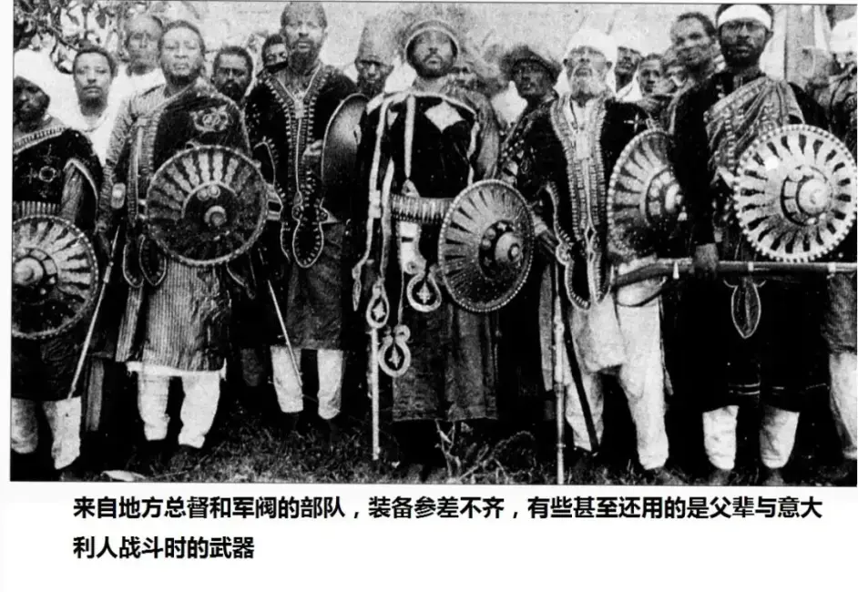 除此而外是地方军阀和总督的部队,这些部队大部分是传统的埃塞俄比亚武装,老实说尽管他们的枪械普及率并不低,但事实上由于各地部队主要由总督自己负责采办,故而其装备的武器也可谓是五花八门。最后则是来自于埃塞俄比亚各部落的部族勇士,这些勇士往往穿戴着代表着各自部落的特色服饰,同时也手持着他们所擅长的各式武器。好一点的有其祖父辈参与第一次意大利战争时所用的步枪,而差一点的则往往还装备着中世纪的弯刀与长矛,但胜在人数众多,同仇敌忾,为此倒也并非不能一战。