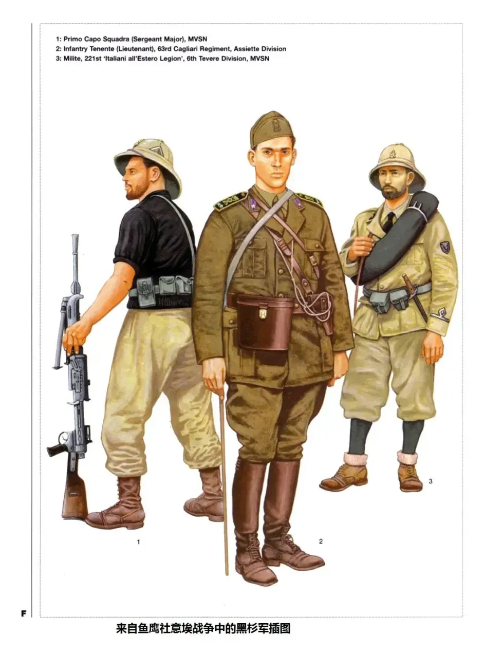 那么相比来说,作为意军精锐的黑杉军又是怎样的呢?事实上,作为墨索里尼精心打造的黑山军,其系统吸纳了相当多的退役老兵以及被法西斯鼓动的热血青年,为此相比起意大利王国军来说,黑杉军普遍敢打能战。而编制上,与当时普遍的军制不同,黑杉军模仿了古代罗马军团的编制,以(班(Squadra)-小队(Manipolo)-百人队(Centuria)-分队(Coorte)-军团(Legione)-集团军(Zona))进行划分。其中每个军团下都有一小部分职业军官和庞大的预备役士兵组成。