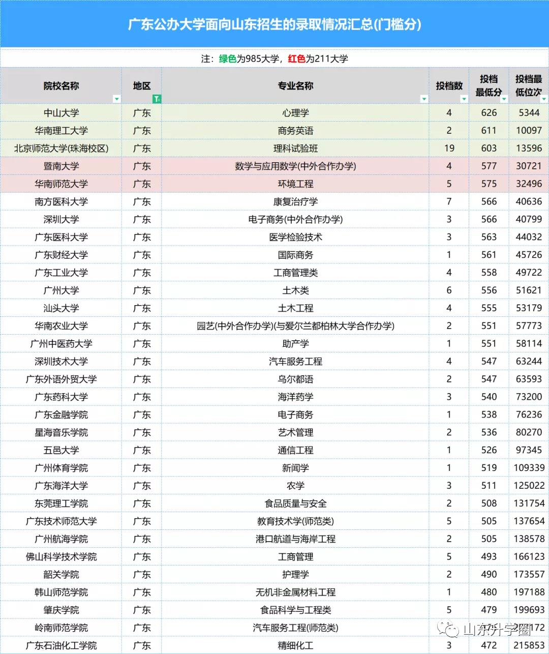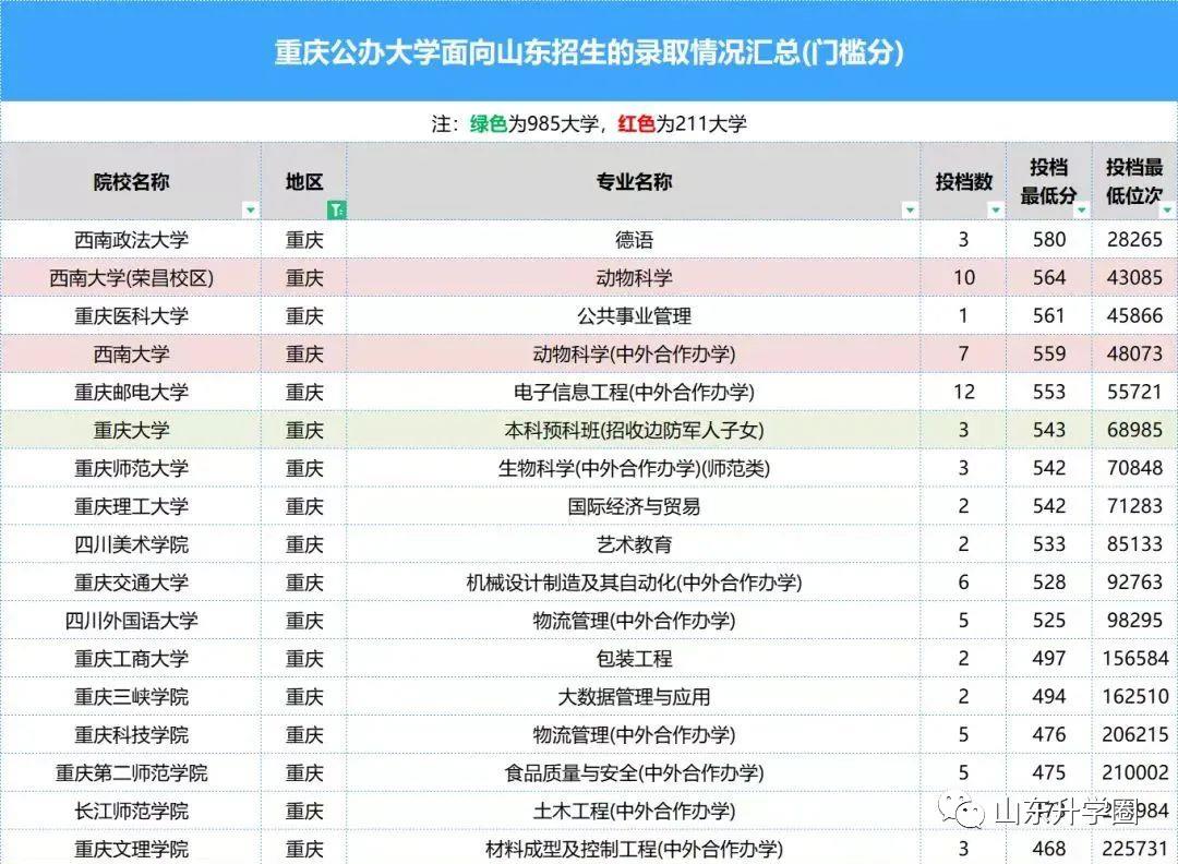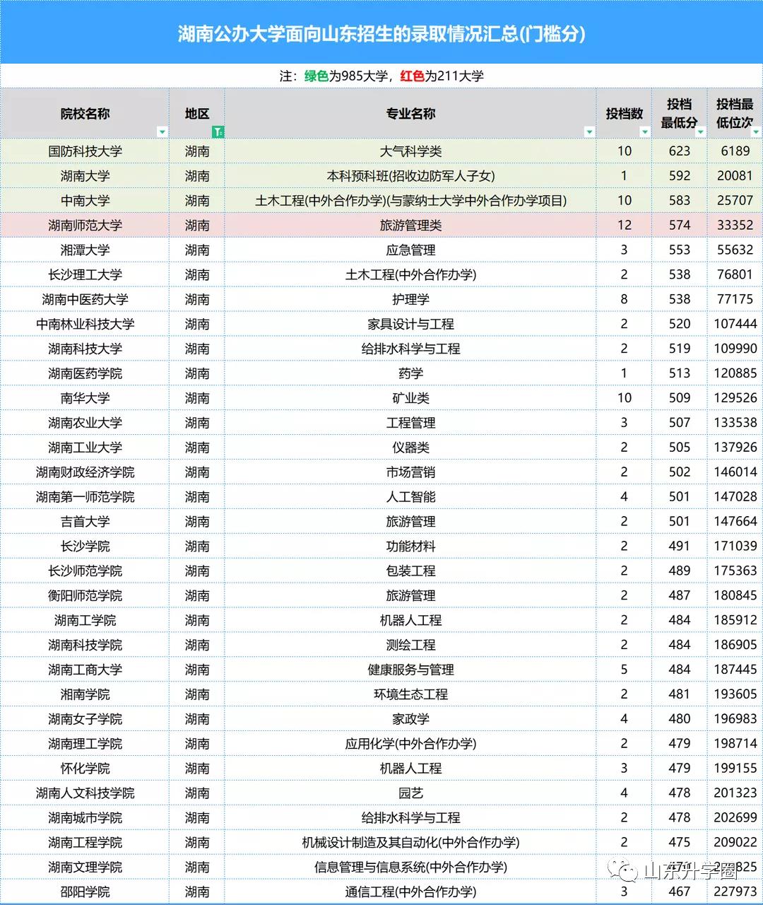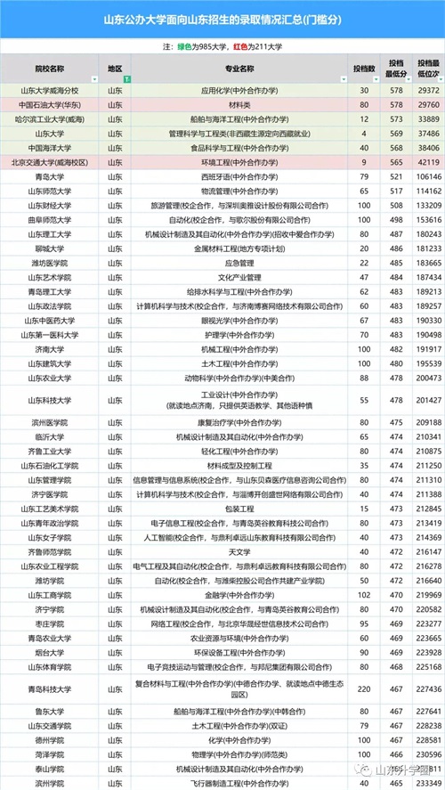 重要数据报考必备|山东高考本科批次最低、最高专业投档分、位次