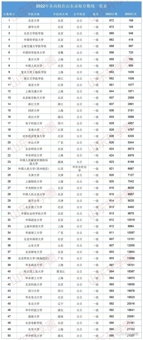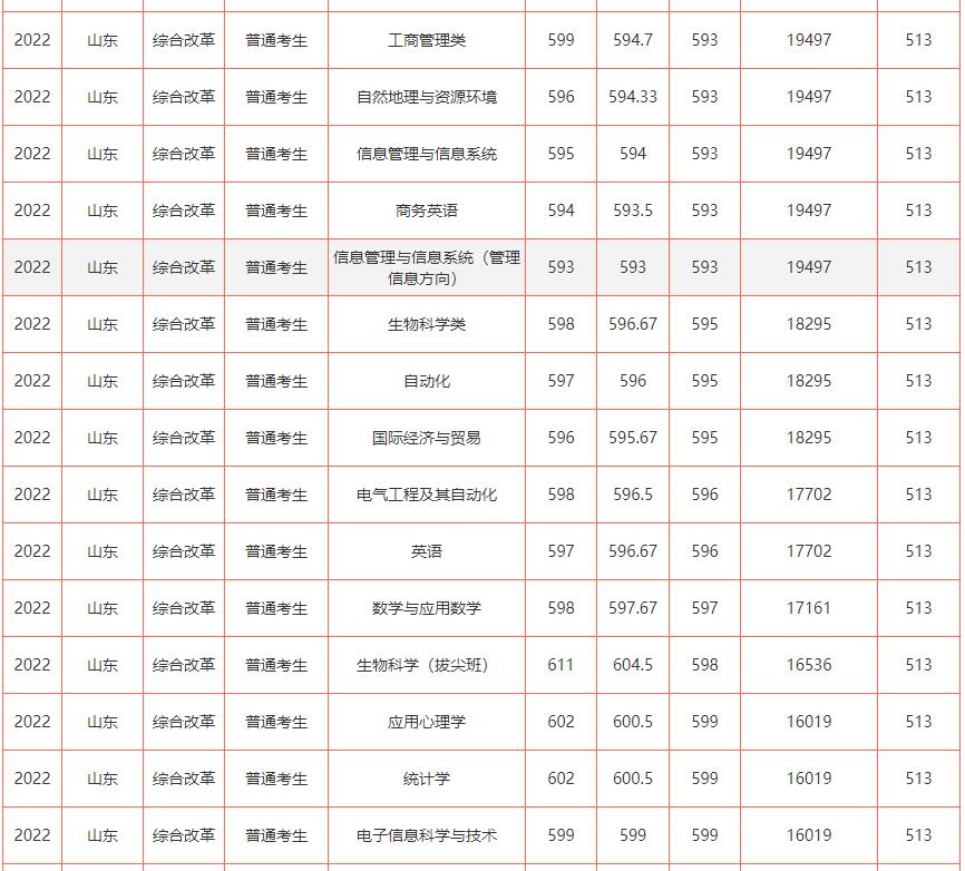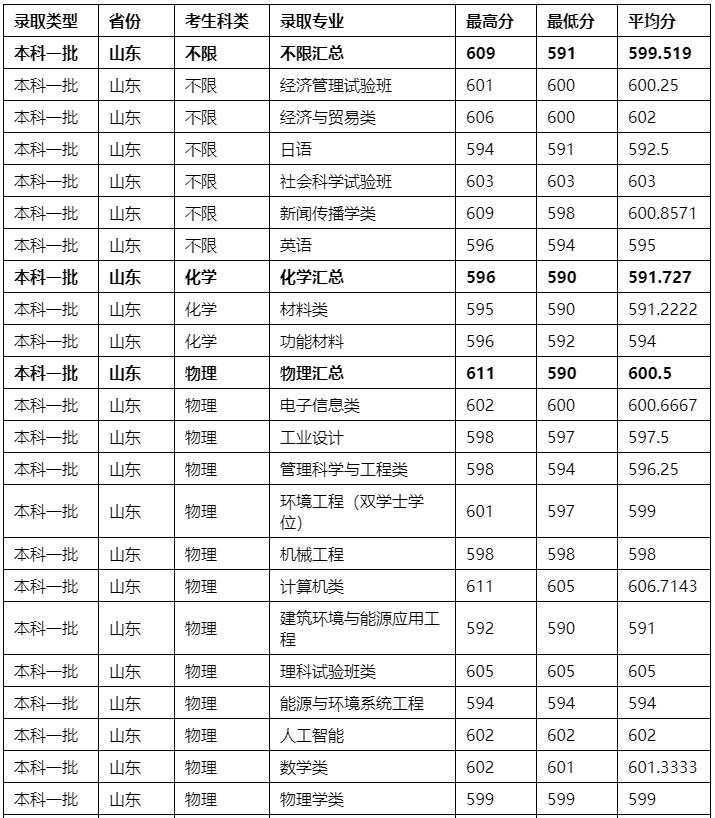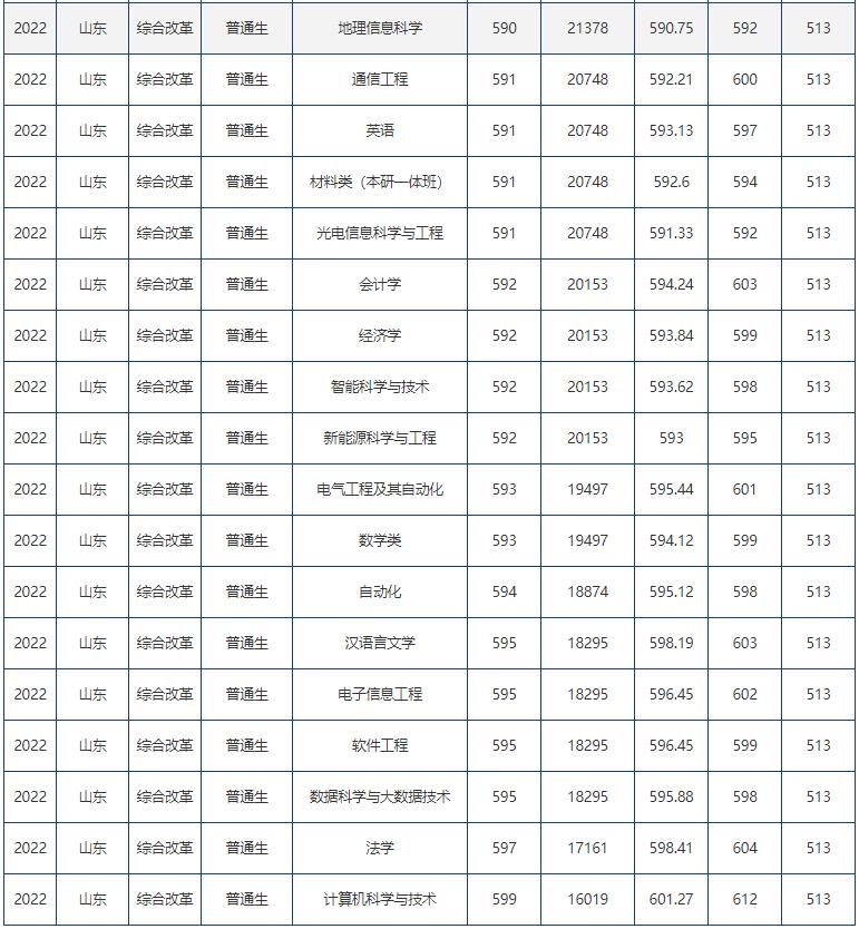 【7】2022年山东各大本科院校在鲁录取分数线一览表
