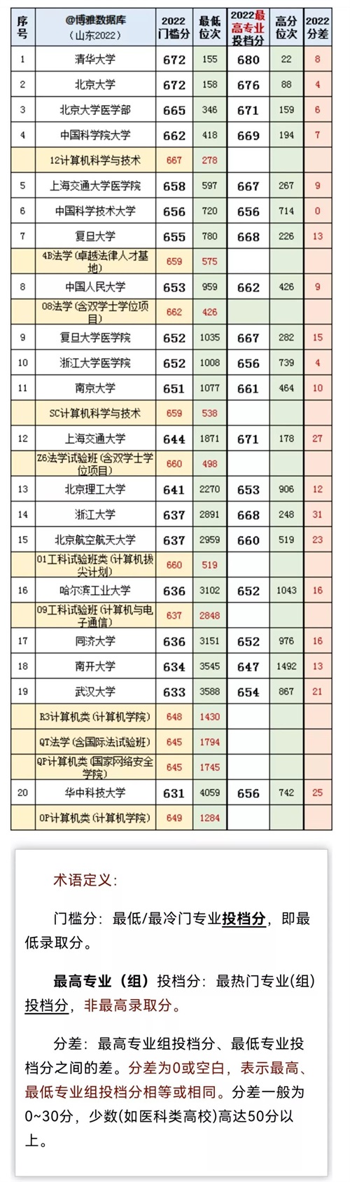 【1】山东高考2022本科批次最低、最高专业(组)投档分、位次