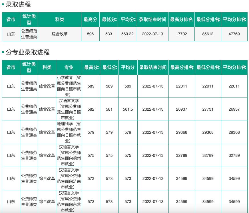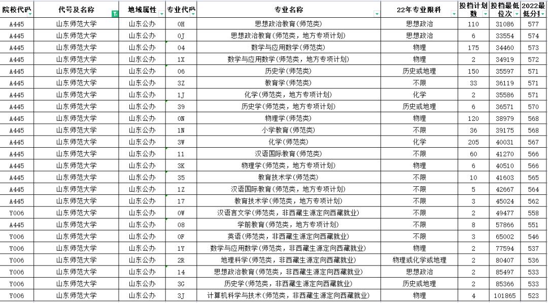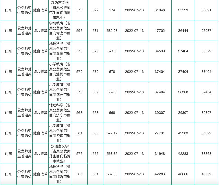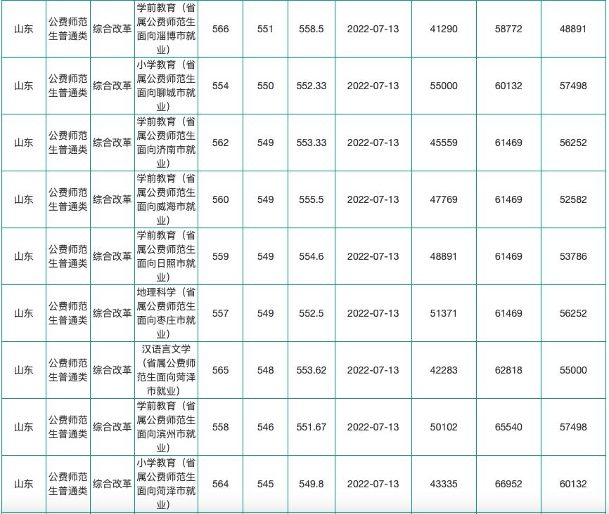 【3】22年山东普通师范专业+公费师范生录取数据汇总!