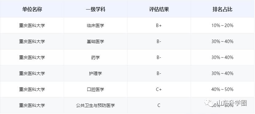 第四轮学科评估中公共卫生与预防医学评估结果为A-;临床医学,药学评估结果为 B+