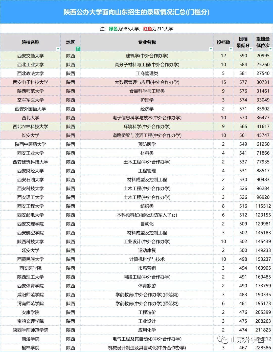 【5】21所211大学的“黄金”专业,在鲁录取分数
