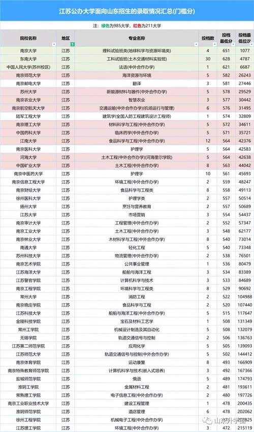 【4】31省公办大学在山东录取情况