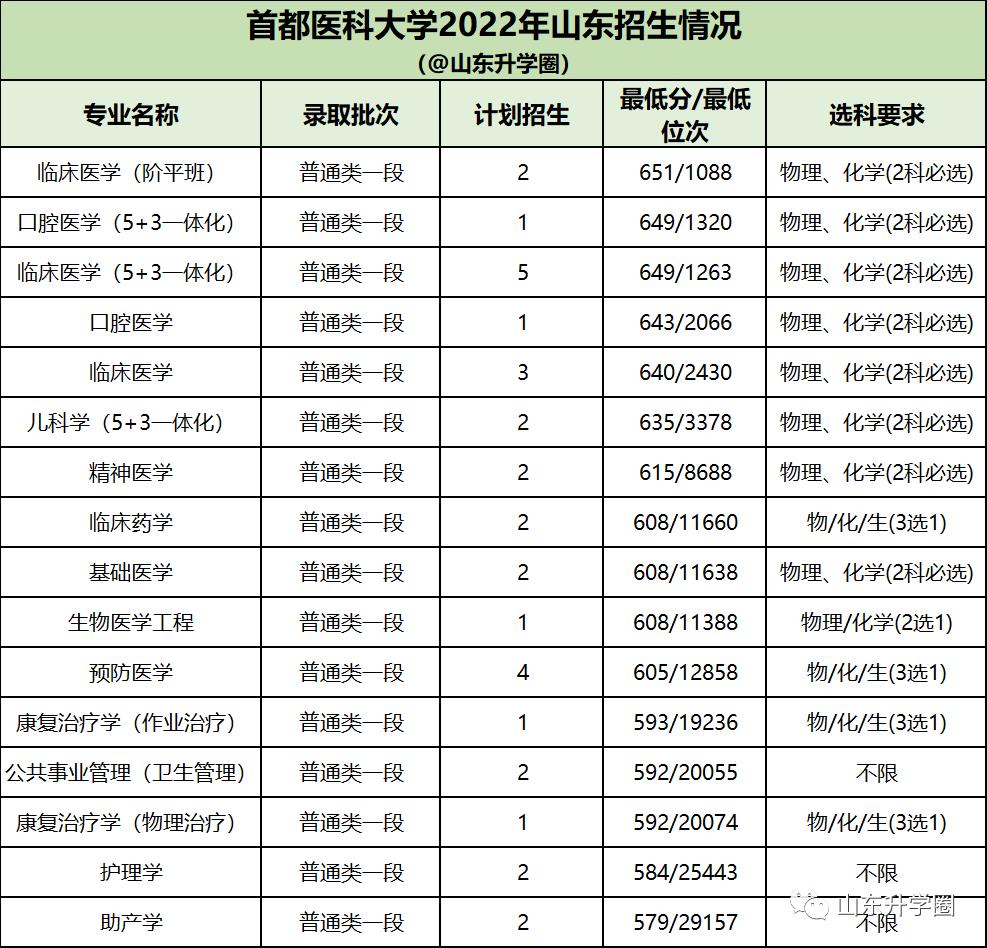 北京协和医学院2022年在山东专业录取分数线: