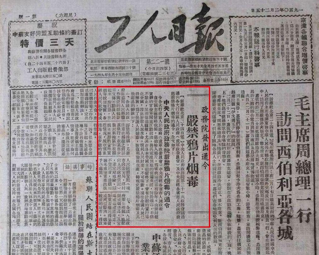 新中国成立之初中央人民政府即采取坚决措施,颁布了《严禁鸦片烟毒的通令》,宣布从《通令》发布之日起,全国各地不许再有制造、贩运及销售烟土毒品之情事,犯者不论何人,除没收其烟土毒品外,须从严治罪。对散存在民间之烟土毒品,限期交出,如逾期不交者,除查出没收外,并按其情节轻重分别治罪。对吸食烟毒的人,限期向有关部门登记,并定期戒除,如隐不登记,或逾期而犹未戒除者,则予以处罚。各级卫生机关,应配制戒毒药,宣传推广有效的戒毒药方,对贫苦瘾民得免费或减价医治。烟毒较盛的城市,得设戒烟所。从人民政府严禁鸦片烟毒到发动大规模群众运动进行禁毒,大体经历了三年时间,到1952年底,在旧中国肆虐的种植、制造、贩卖、吸食烟毒活动被基本禁绝。