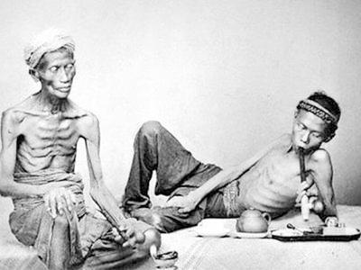 瘾至,其人涕泪交横,手足委顿不能举,即白刃加于前,豹虎逼于后,亦唯俯首受死,不能稍为运动也。故久食鸦片者,肩耸项缩,颜色枯羸,奄奄若病夫初起。——清·俞蛟:《梦厂杂著》