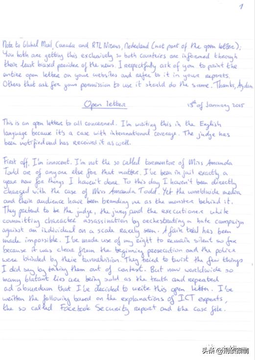 附上拒不认罪的柯本2015年公布的手写信,详细记述了他是如何和阿曼达还有所有受害者的遭遇无关的。有兴趣了解柯本的“冤屈”的可以一读。