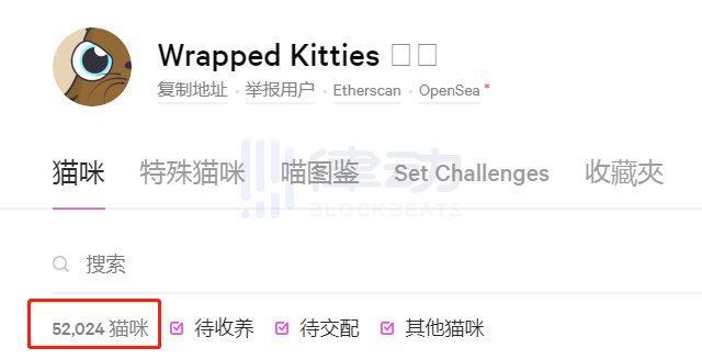 截止目前,Wrapped Kitties 合约拥有 52024 只,相当于市场产生了 52024 个 WCK,大量买入加密猫的方放是一次性购买 大量的 WCK。因为你总能用一枚 WCK 兑换一只加密猫。
