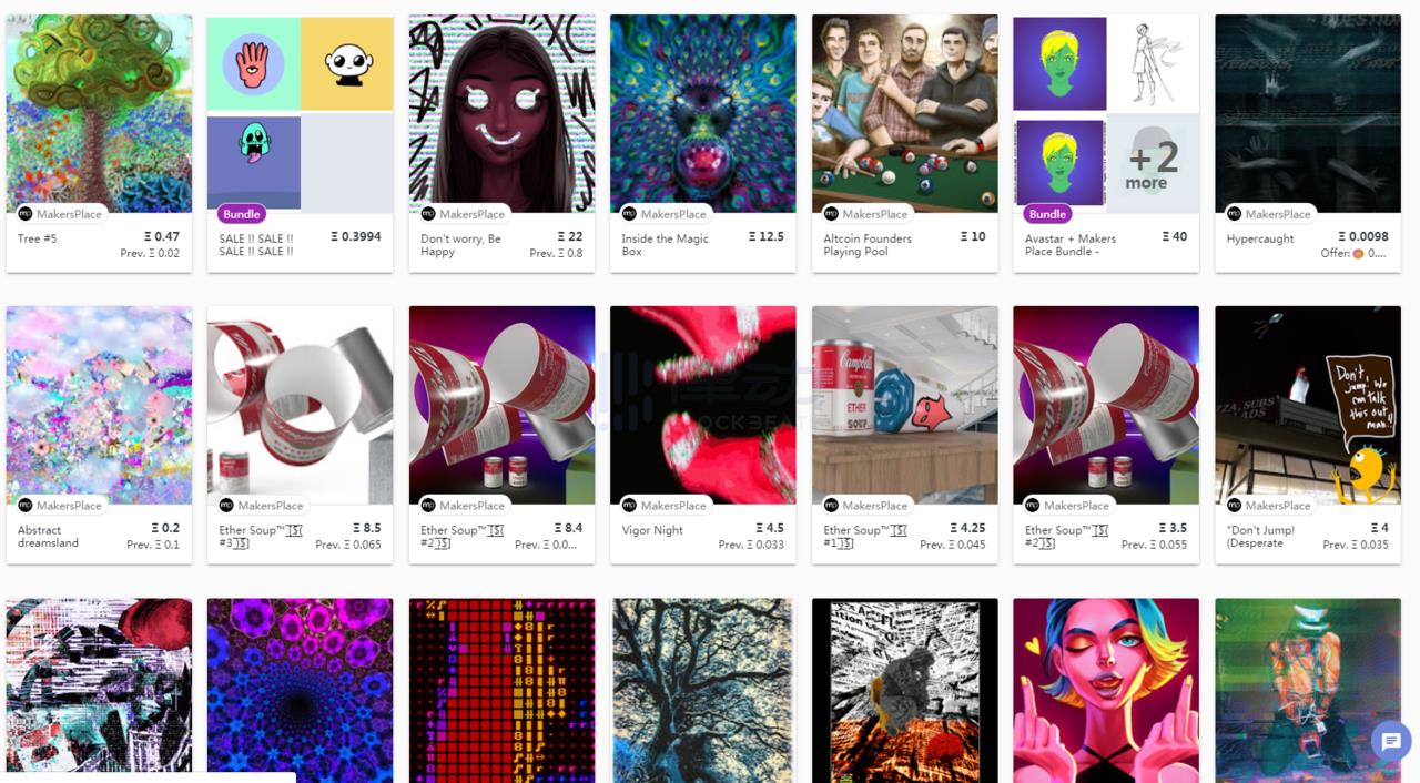 在麦子钱包 DappStore 分类里你可以找到以太坊上 NFT 相关应用,Superrare 和 MakersPlace 这种加密艺术创作作品,更多的是艺术家们的产物,购买者更倾向于它背后的作者和艺术品本身的外观、创意。