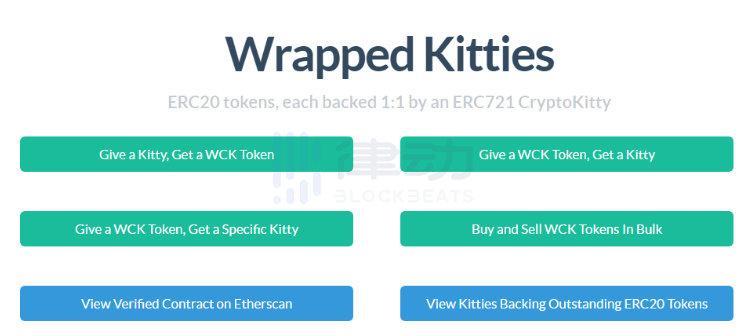 用户可以通过网站向合约发送一只加密猫,并获得一个 ERC20 WCK 令牌