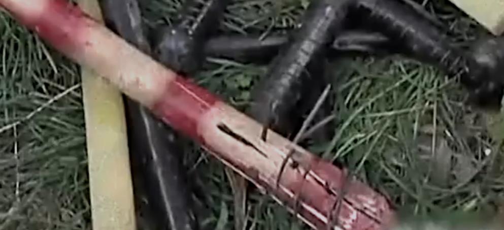 这些凶器大概有三四十件,上面全都血迹斑斑,无一不在诉说符国俊被打时的惨状。