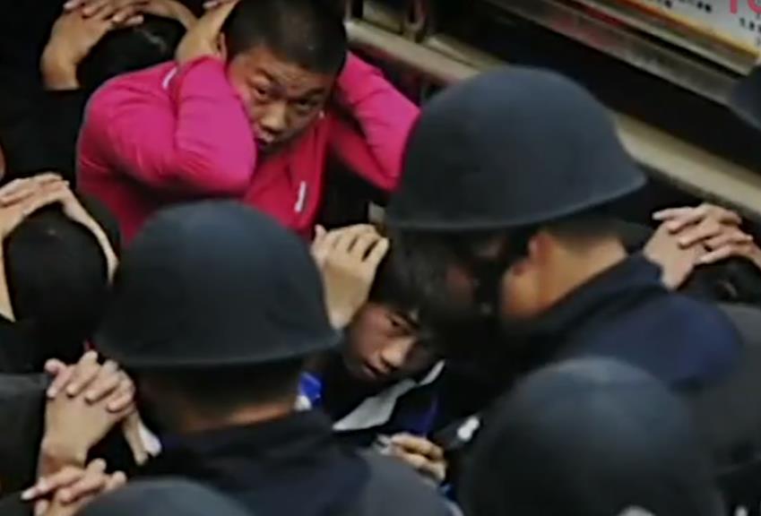 35名保安也丝毫不顾及周围人的眼光和质疑,瞬间就把他们打翻在地。