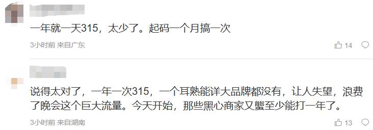而315晚会还有时长限制,仿佛就看这两个小时里谁倒霉。