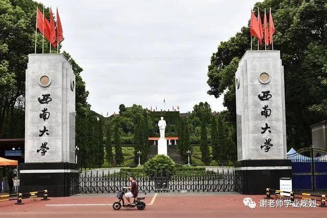西南大学,杂交水稻之父袁隆平院士的母校,是中华人民共和国教育部直属并与农业农村部、重庆市共建的全国重点大学。学校溯源于1906年建立的川东师范学堂,2005年,西南师范大学和西南农业大学合并组建为今之西南大学,并入选国家“211工程”重点建设高校。教育部直属的“师范六姐妹”之一,学校拥有28个一级学科博士点,王牌专业包括金融学、思想政治教育、教育学、体育教育、汉语言文学、英语、新闻学、历史学、数学与应用数学、物理学等,双一流建设学科有两个:教育学和心理学,2022年本科升学率31.83%,毕业生主要流入教育行业(超50%)。