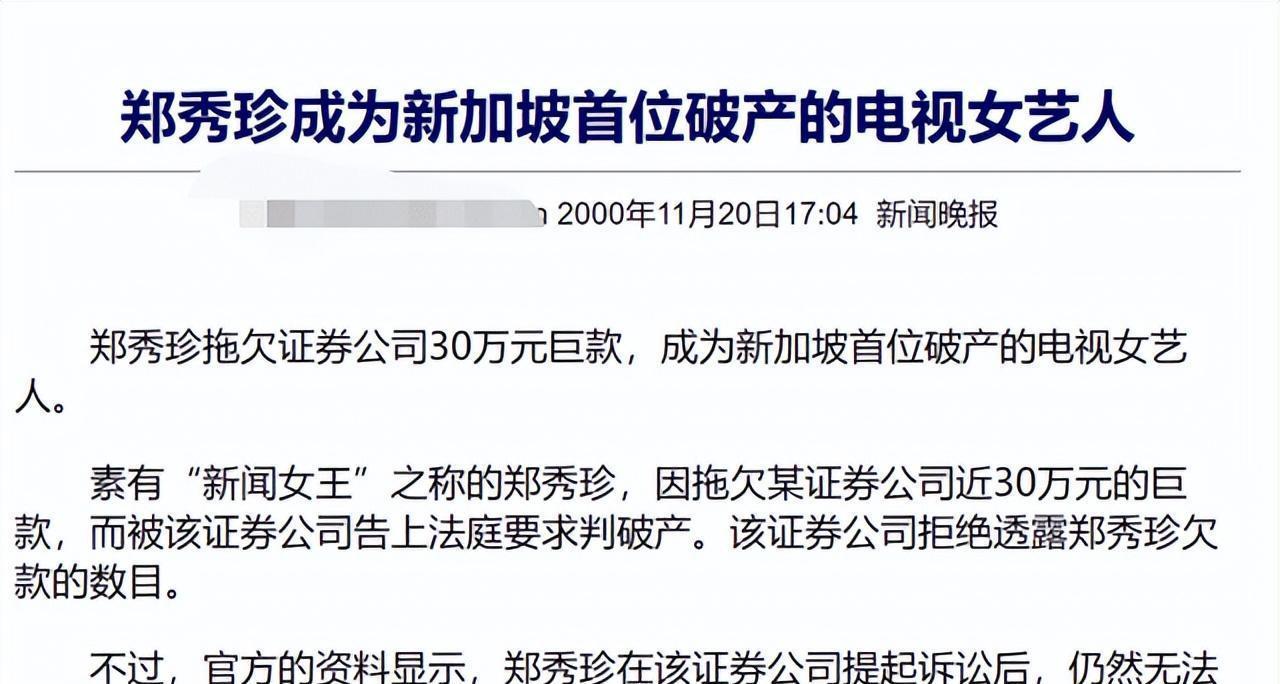 更是对娱乐圈现状的一种反思。只有通过加强财务教育和监管,以及为明星们提供更加稳定的经济保障,才能避免类似事件的再次发生。新加坡女演员郑秀珍,