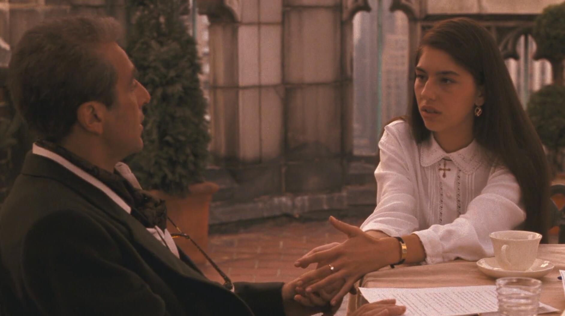 麦克的女儿玛丽与堂兄弟文森相爱,而近亲通婚本身对于黑手党的规则来说是严令禁止的,更何况是柯里昂这个传统黑帮家庭?
