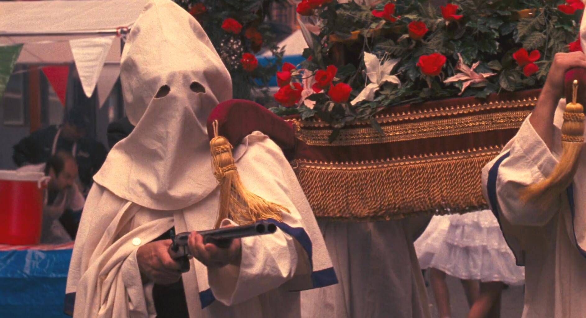 因此,《教父3》更像是整个“黑手党柯里昂家族”史诗的命运终章:影片一方面将“柯里昂家族兴衰史”的主题彻底完结——柯里昂家族最终合法化,这也意味着柯里昂家族的另一个命运走向,即抛弃了黑手党制度;而另一方面,影片又以人物的悲剧的结局——麦克女儿被暗杀,暗示了柯里昂家族的命运终章不乏悲剧性的罪与罚。
