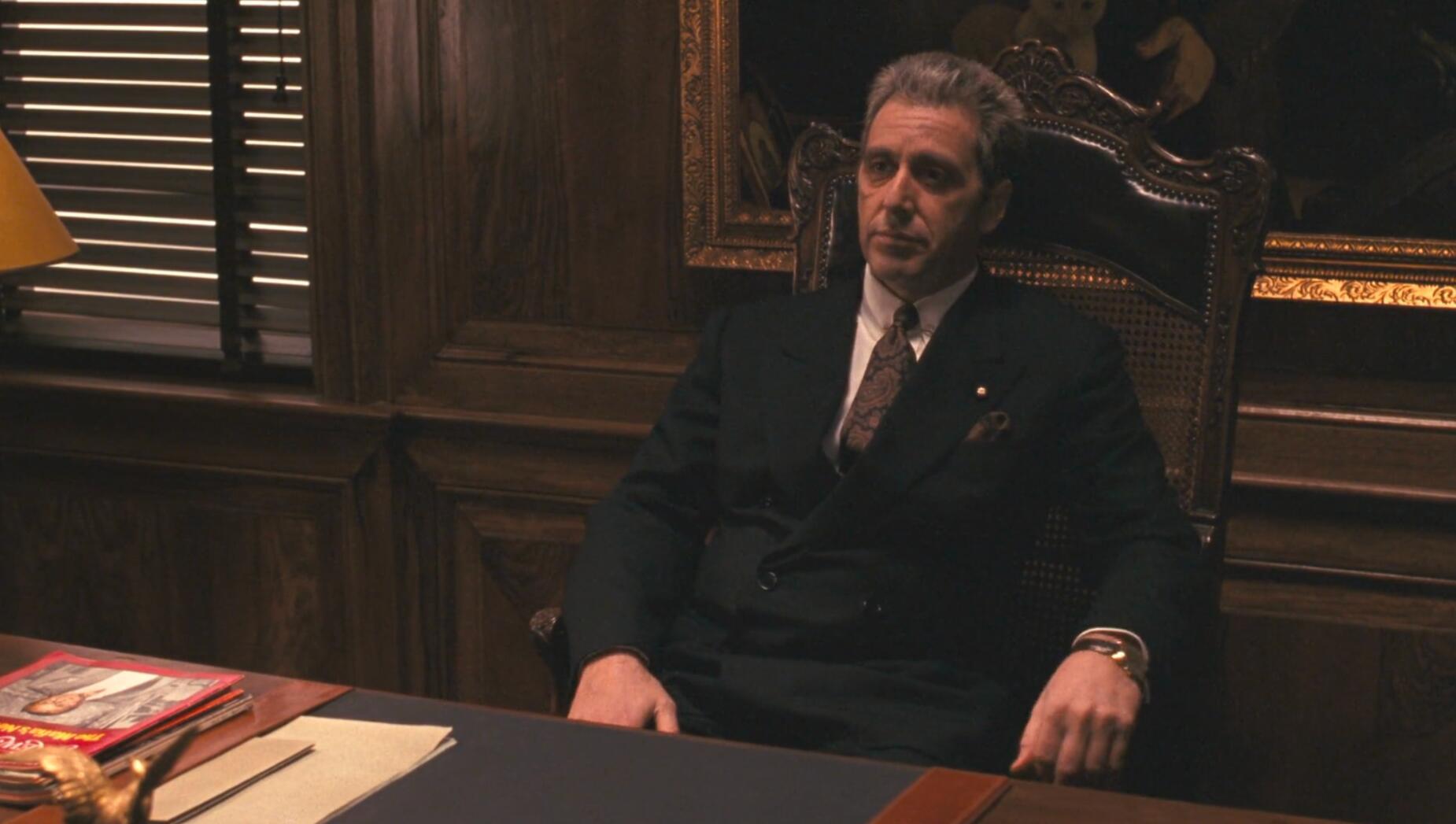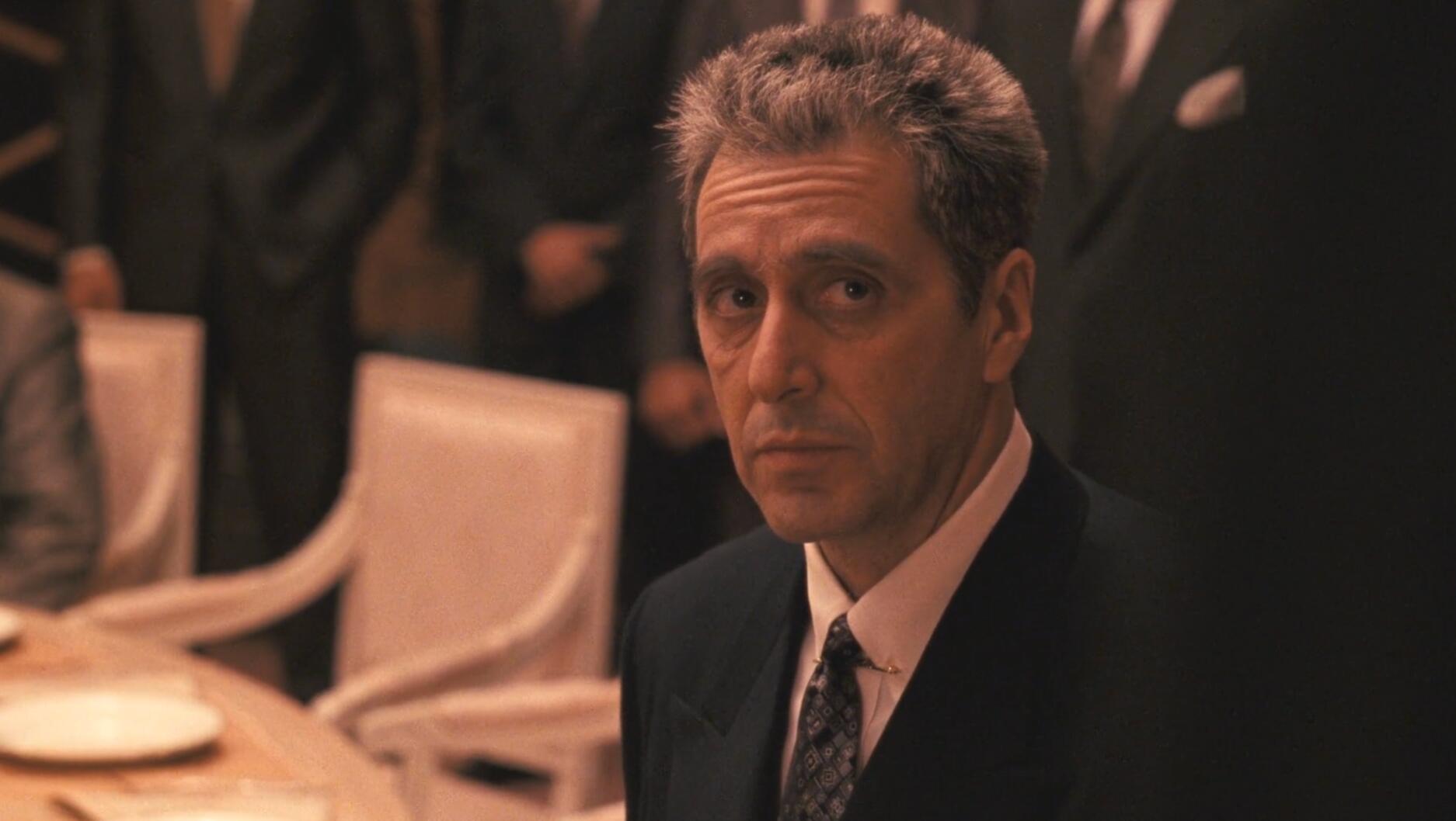 尽管在叙事手法上并没有创新,但聚焦于“柯里昂家族的兴衰历程”的核心情节仍然是影片的坚实主干,接过一代教父权力的麦克依旧是影片的情节驱动力。