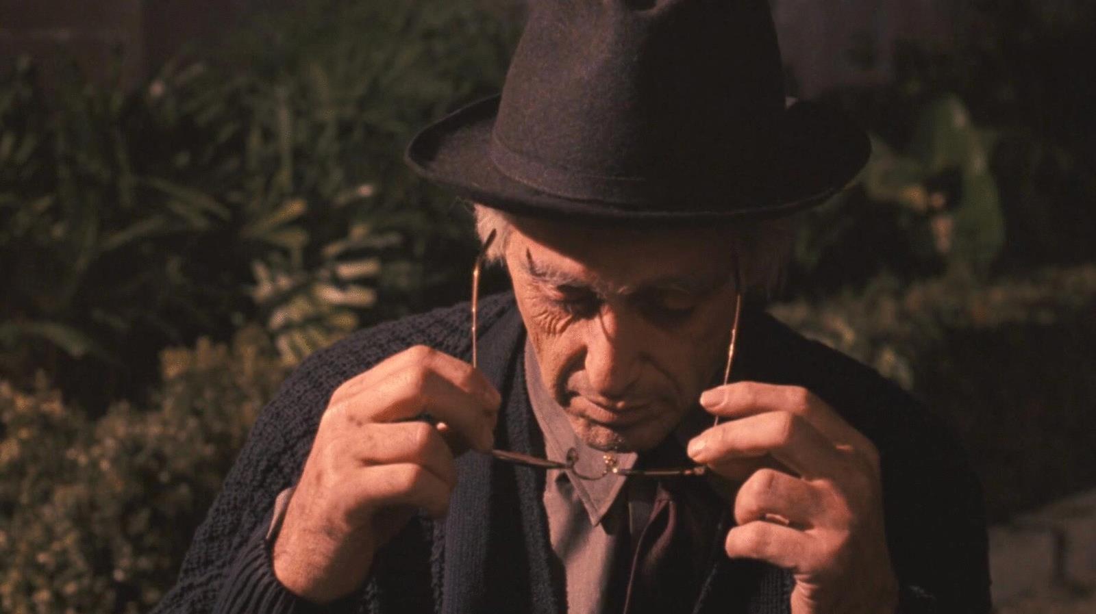 像第二部一样,影片的最后依旧是聚焦于麦克的镜头,孤独的他坐在家乡西西里门前的椅子上,颤抖着双手戴上了眼睛,度过了生命的最后一段时光。