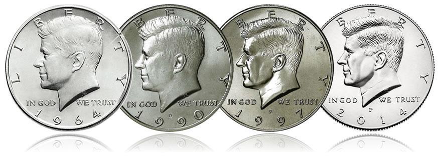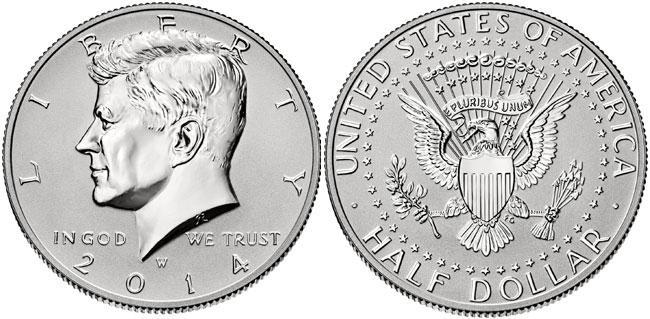 Kennedy Half-Dollar。50美分的硬币很少见,主要用于收藏,但也可以作为一般的货币使用。