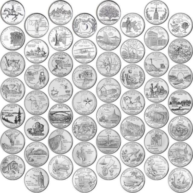 想把50个州都收齐,还是比较困难的。25分的硬币很神奇,很多投币的地方都收他。比如游戏机,饮料自动贩卖机,公用洗衣机,烘干机等。