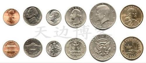 美国的硬币比较复杂,常见的有1分、5分、10分、25分,比较少见的有50分和1元硬币。