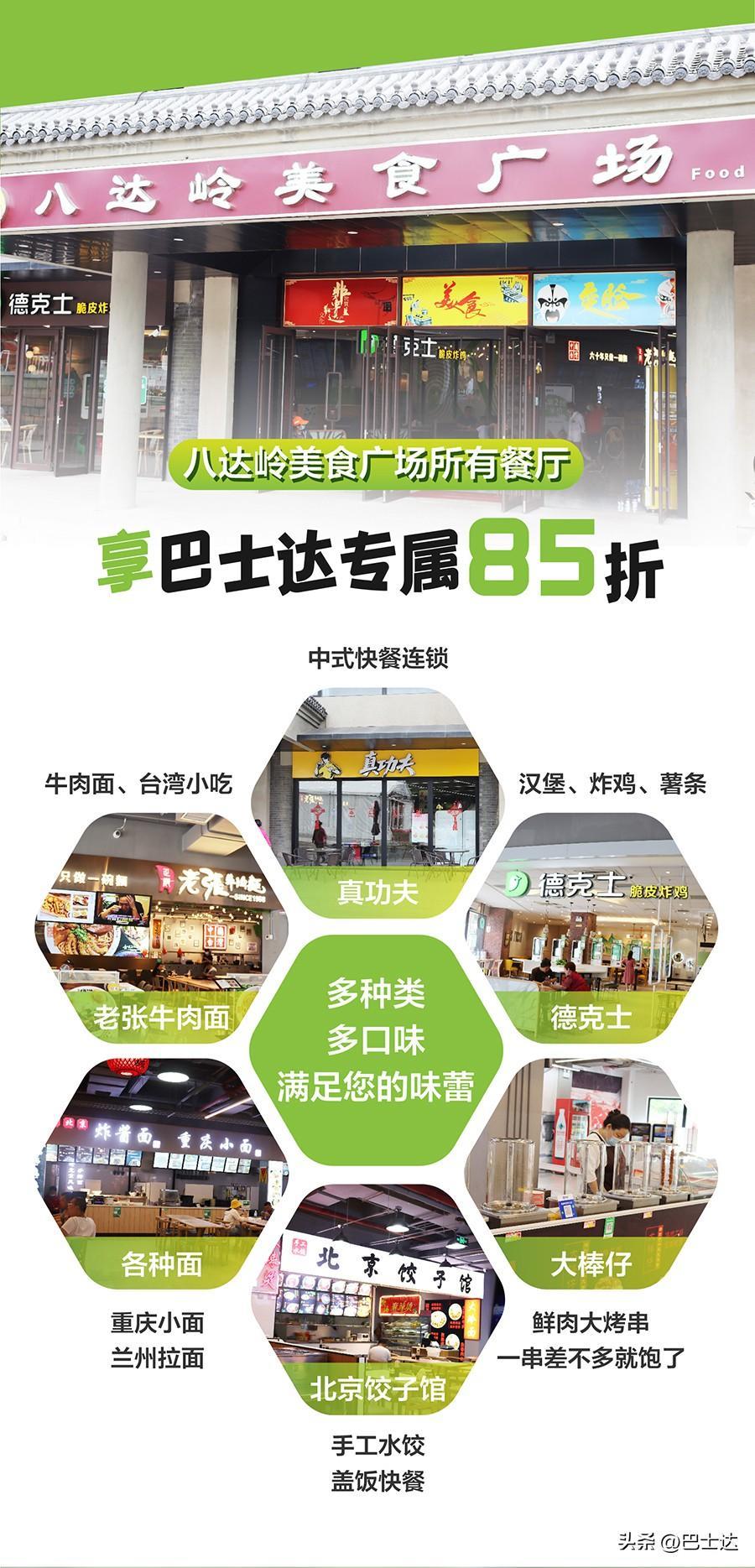 6) 巴士达客户专属折扣,八达岭美食城所有餐厅85折钜惠