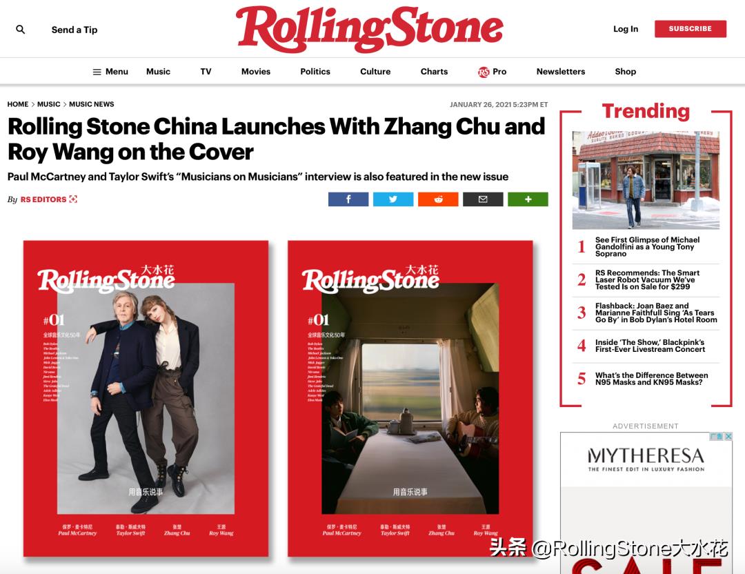 Rolling Stone美国官网宣布Rolling Stone大水花的正式到来