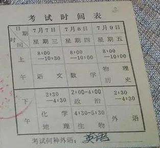 那时的高考时间是在最为炎热的7月7日,8日,9日三天。