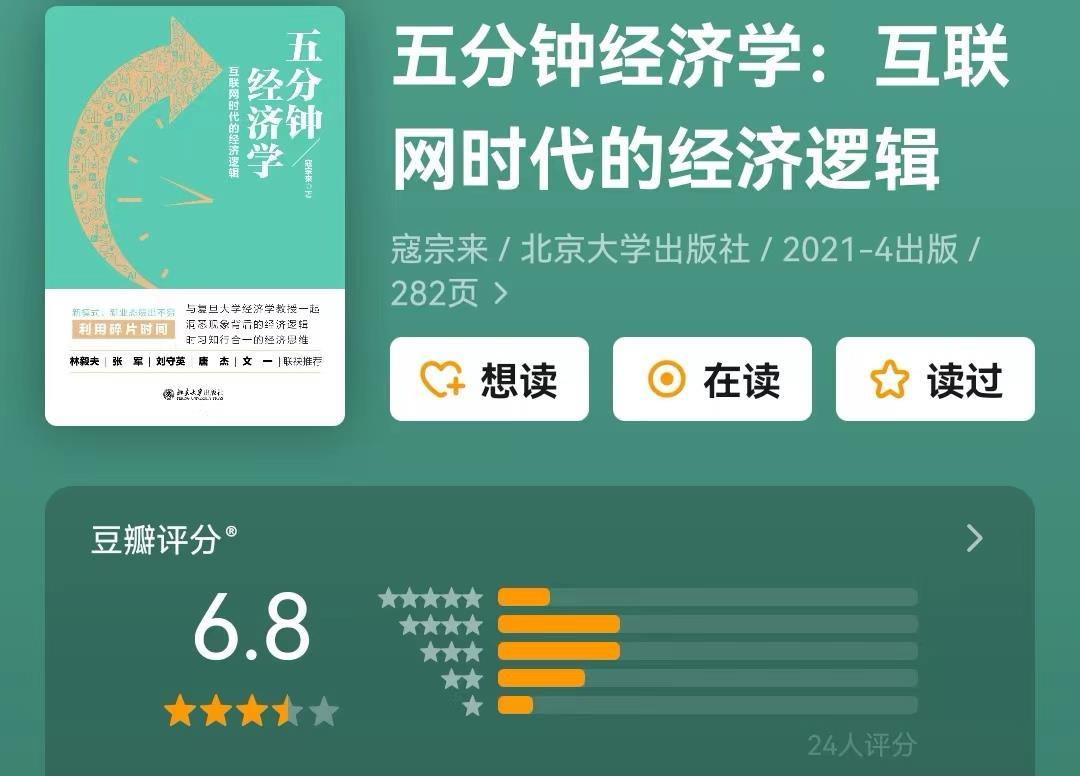 复旦大学寇宗来教授的《五分钟经济学》,就是用最通俗的语言,三五分钟就可以看懂一个经济现象。