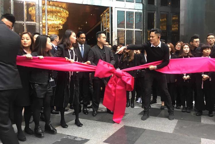 转眼迫近10点开门时间,终于!工作人员带着粉色彩带出来倒数剪彩了!