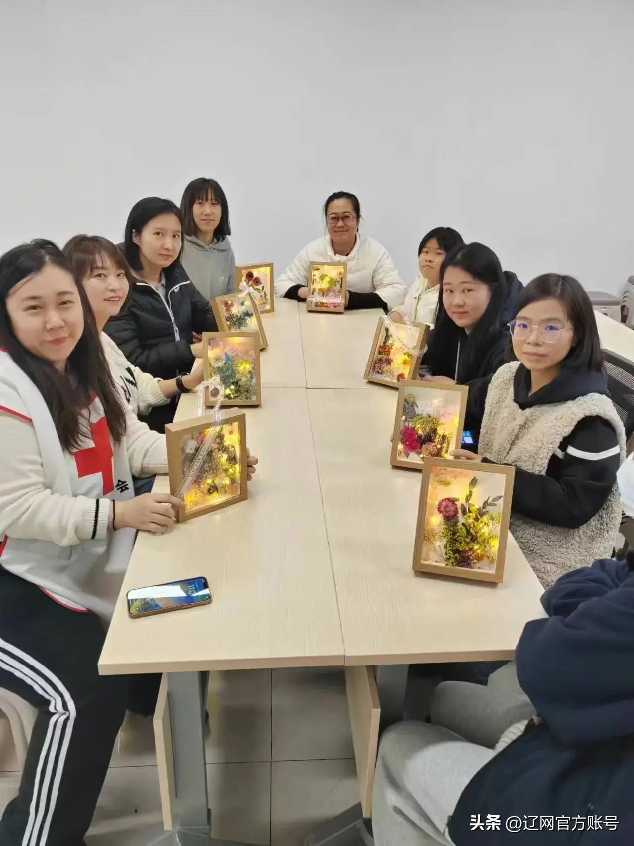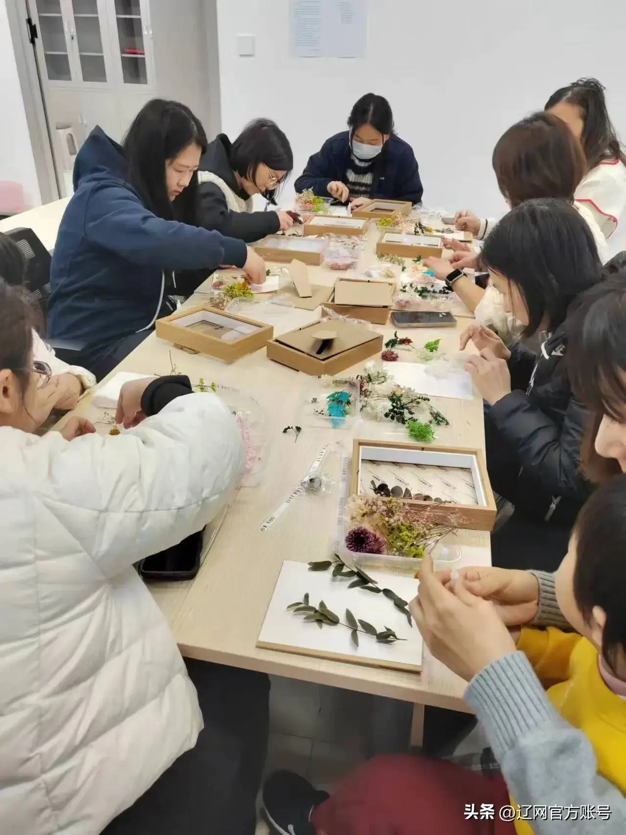 大家利用午休时间制作粘贴画,活动现场大家非常仔细的把干花粘到背版上,同时还要根据花色种类进行布局搭配,经过每个人的精心设计,最后都制作成了自己心目中的最美的作品。